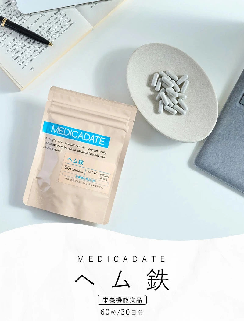 - 1日2粒で280mgのヘム鉄を簡単補給:吸収率が高く、体にやさしいヘム鉄を効率的に摂取。